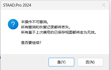 3. 选择工具后,注意警告信息。系统将提示您重新编号过程不可逆,撤销/重做功能将不可用,基于上次编号的保存视图也将失效。