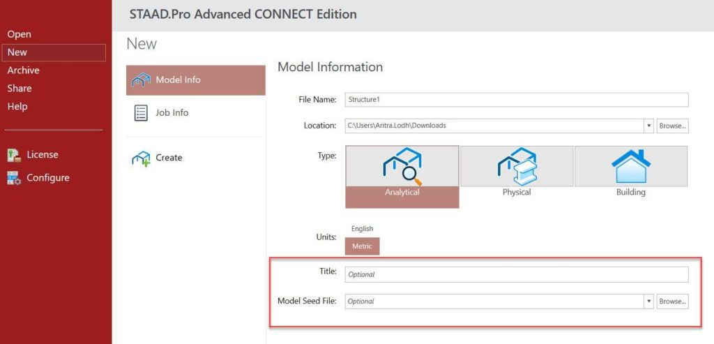 **Note: Seed file is introduced in STAAD.Pro CONNECT Edition V22 U5