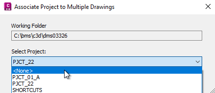 Civil 3D Tool: Associate Project to Multiple Drawings... = <None>