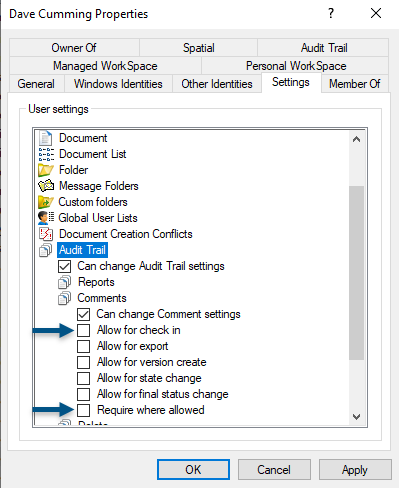 4) Suppress the Audit Trail Comments for the initiating user. Failure to do so will result in a need to press OK/Cancel as every file is being checked in.