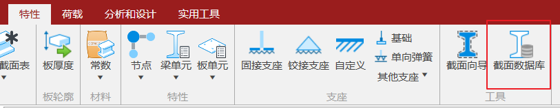 1. 打开特性>截面数据库。