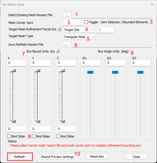 6. Optional: use Save Remesh Restart File to create a new JointMesh restart file. This is necessary if you plan to perform consecutive mesh refinements.