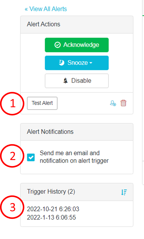 3 - Each time an Alert is triggered, details regarding the instance will be logged in the Trigger History.