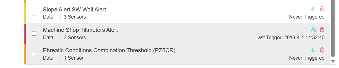 Once populated, the Alerts page above will show you a list of all alerts that have been created.