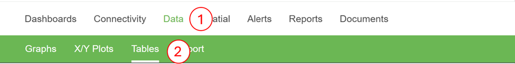 Note: Within the Tables sub-module only one sensor can be viewed at a time.