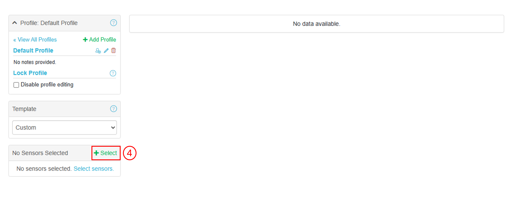 4. Once the template has been selected, the user must then select the sensors to be shown in the Tables module. Click the button to select which sensors will be brought in.