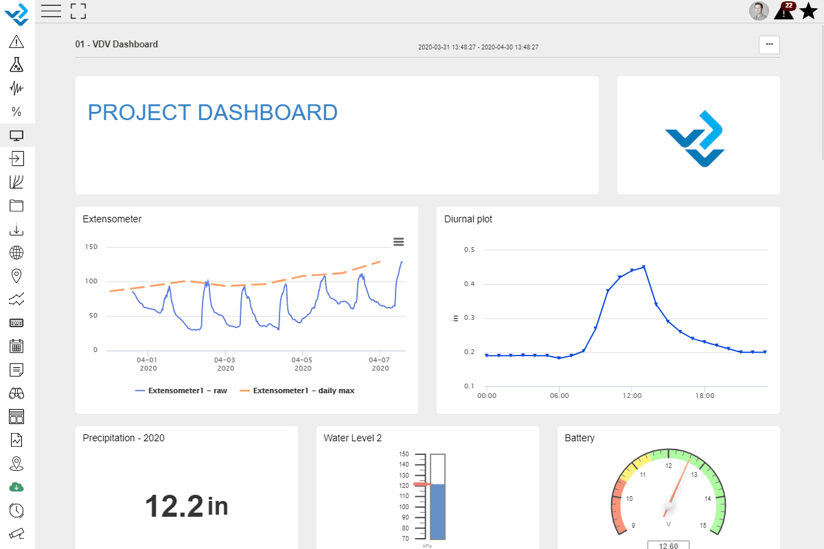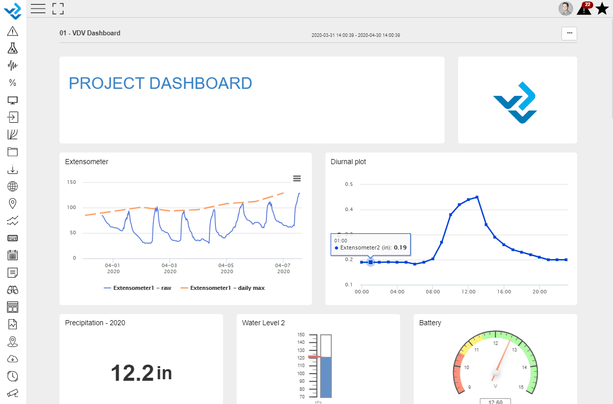 When viewing a Dashboard, you have multiple options to work with the data. You can zoom in and out, download the data, download the graphs and change the Time Scale.