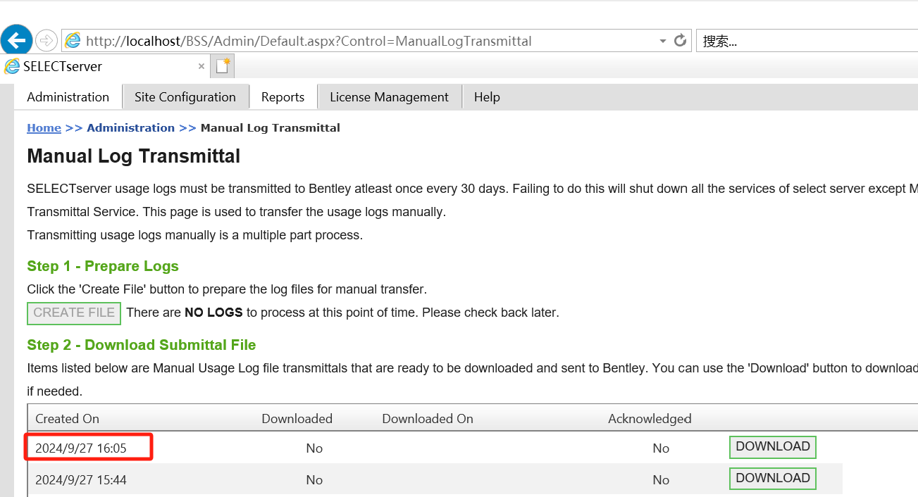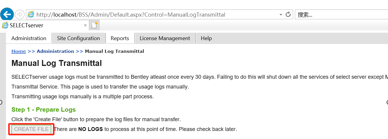 服务启动后请再次点击Manual log transmittal按钮查看create file 按钮是否是可点击的状态。