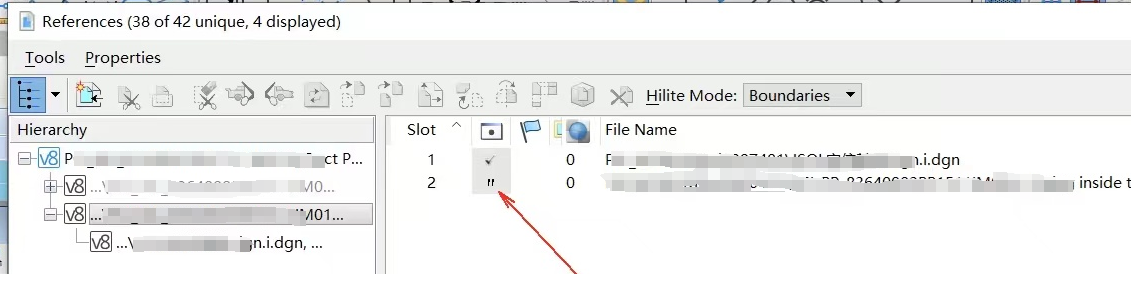【回答】列中有引号 " 意味着此参考为多余参考(Redundant reference),即它在树中的多个位置显示为嵌套参考,且位置、缩放、旋转和剪切边界均相同。即有同样的内容参考了两次以上的意思,卸载掉多余的保留一个就好。