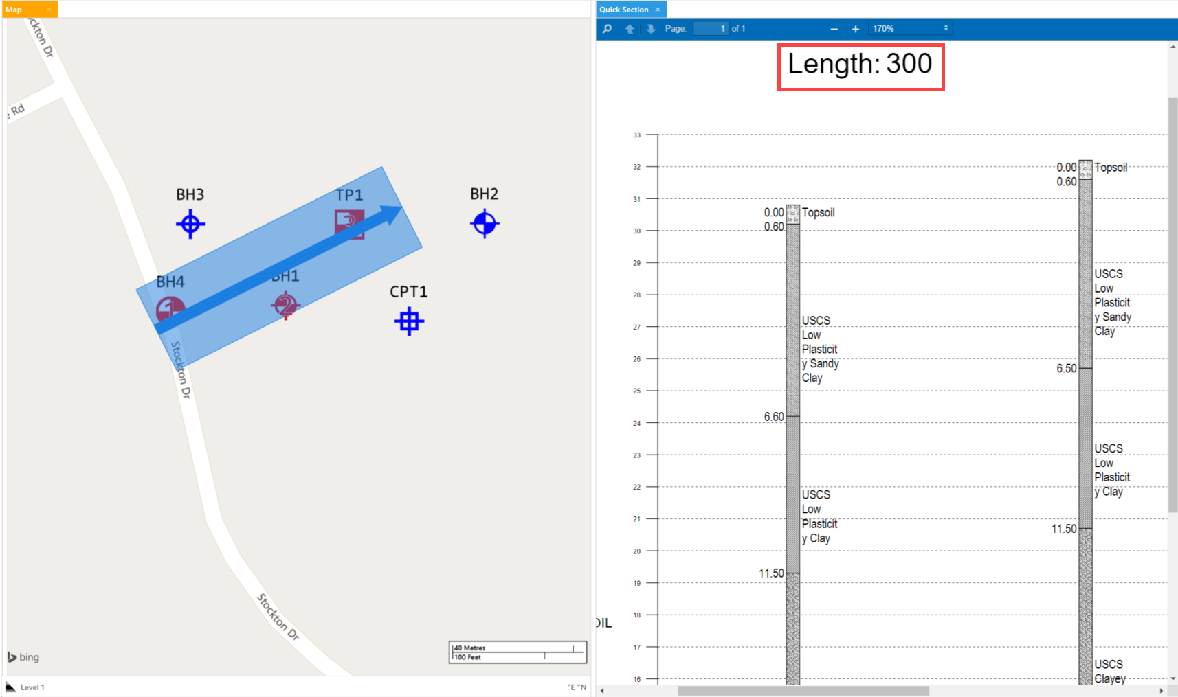 For example, a 1:100 scale would mean that 1 m on the Section would represent 100 m in real life (or similarly, 1 ft on the Section would represent 100 ft in real life).