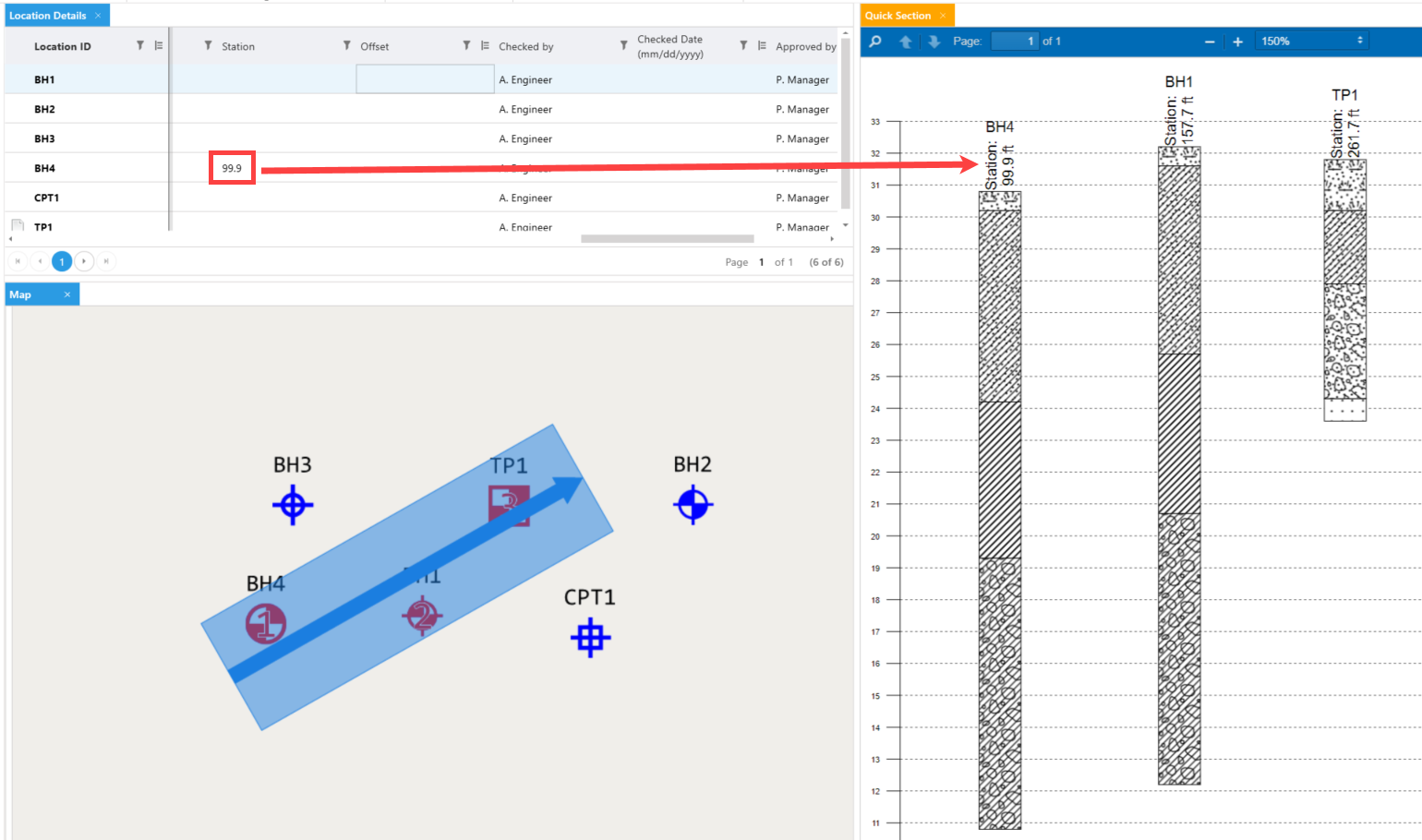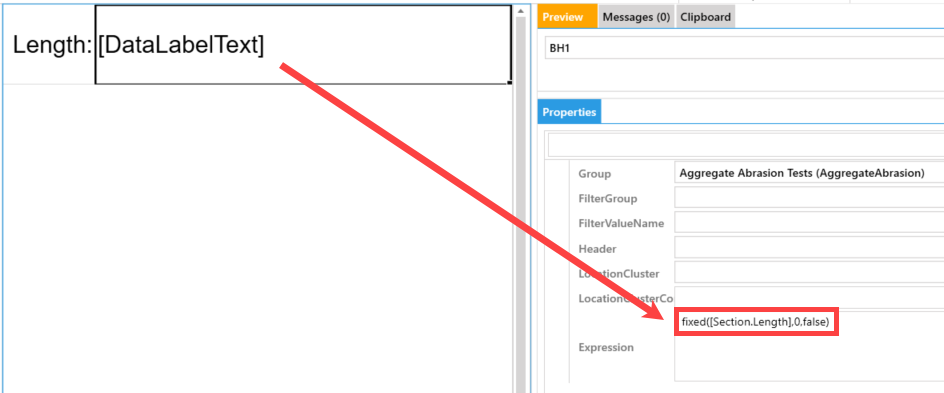 This expression will return the distance along the baseline (Station/Chainage) of each Location to 1 decimal place. In the example below, it is used similar to the examples above in a Header Data Text item in the header area of the Strip.