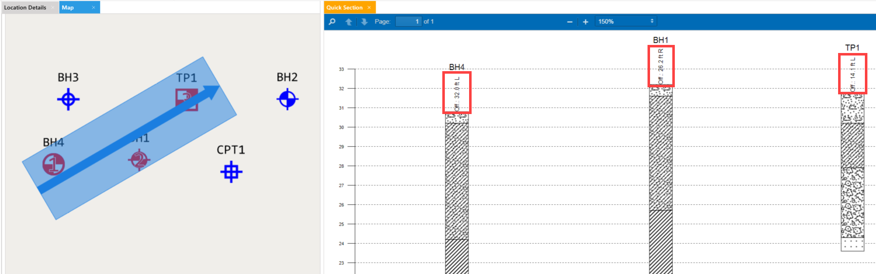 [Section.Offset] can be used on a Quick Section Strip to return the perpendicular offset of a Location from the Quick Section baseline.