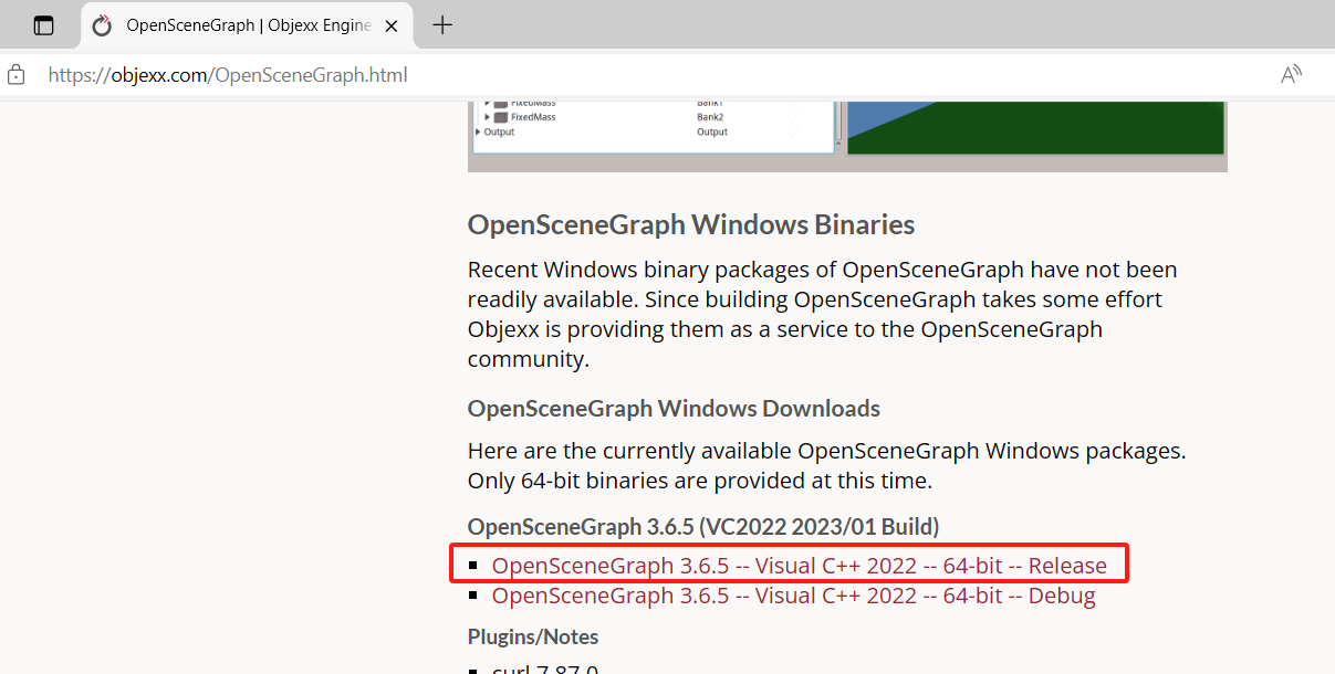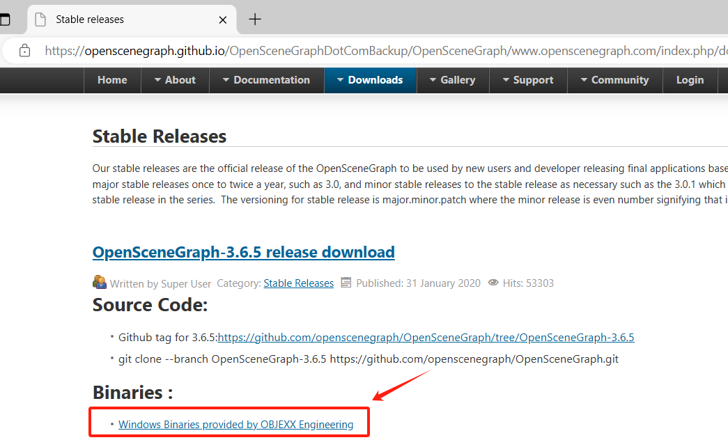 会跳转到如下下载地址:https://objexx.com/OpenSceneGraph.html