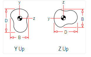与局部 Y 轴平行的最大尺寸(沿 Y 方向的总体截面高度)。 图 : 1. B和D参数将与所选轴系相对应 |