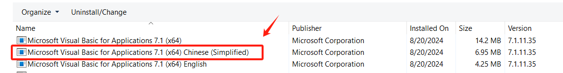 出错的原因是离线安装包里缺少了VB的这个中文语言安装包:VBA71-KB2803801-x64_2052.msp