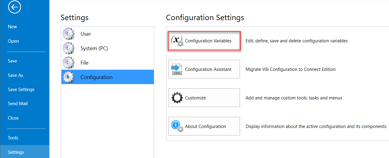 1) Pick File>Settings>Configuration>Configuration Variables.