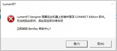 由于客户电脑上没有安装Bentley旗下与LumenRT配套使用的设计软件如Microstation、ORD等导致。