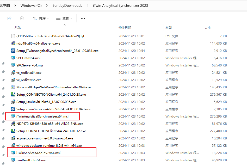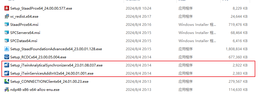 以STAAD离线包为例,下图中标出的插件 iTwin Services Add-in以及 iTwin Analytical Synchronizer是需要联网安装的。