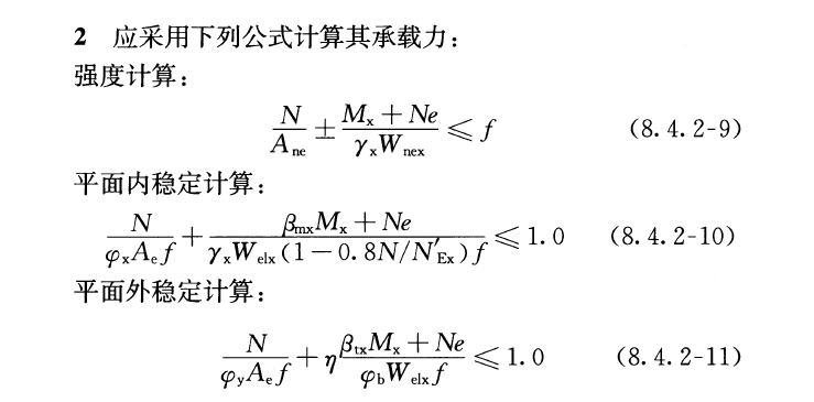 这个警告信息表明在进行钢结构设计验算时,对于编号为8的构件,软件已经考虑了屈曲后的强度,但在Y轴方向存在一个明显的弯矩。根据《GB50017-2017》钢结构规范,当次轴弯矩My对应的受压应力My/(wny*ry)大于总应力的占比的30%时,会给出警告。软件是按照规范公式8.4.2-9、8.4.2-10或8.4.2-11计算得到的结果,即不考虑My次轴弯矩的计算值。当次轴占比过大时,软件会发出警告。