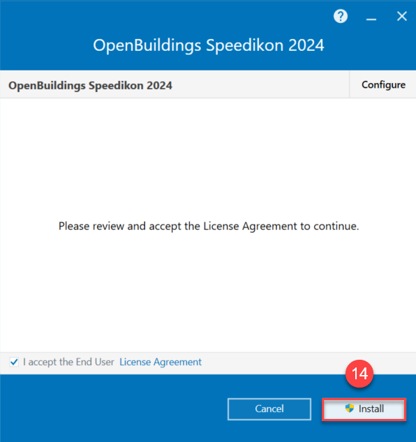 - Install OpenBuildings Speedikon by clicking Install.