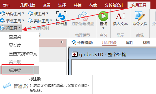 Staad.Pro中的一个分析模型,想测量一个分段梁的长度。