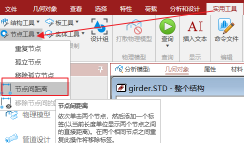 方法二:使用节点间距离工具。 这个工具可以测量模型中任意两个节点之间的距离。