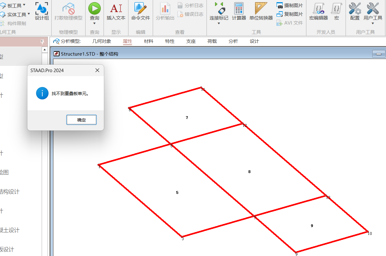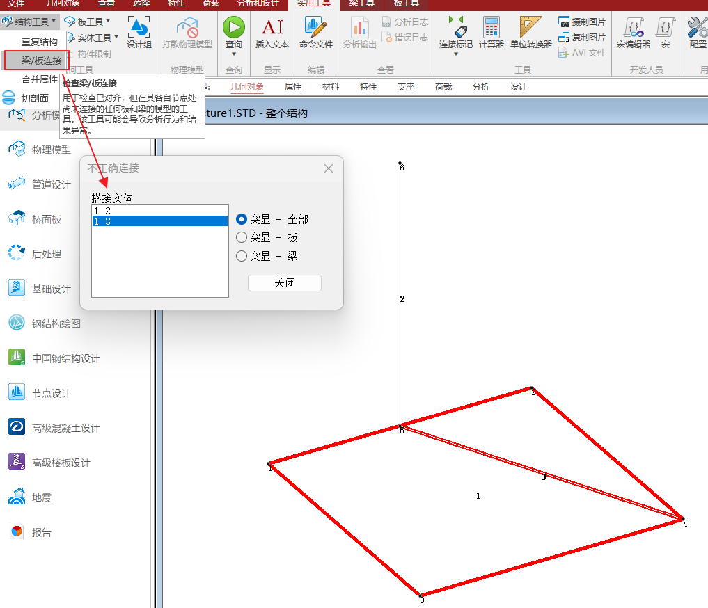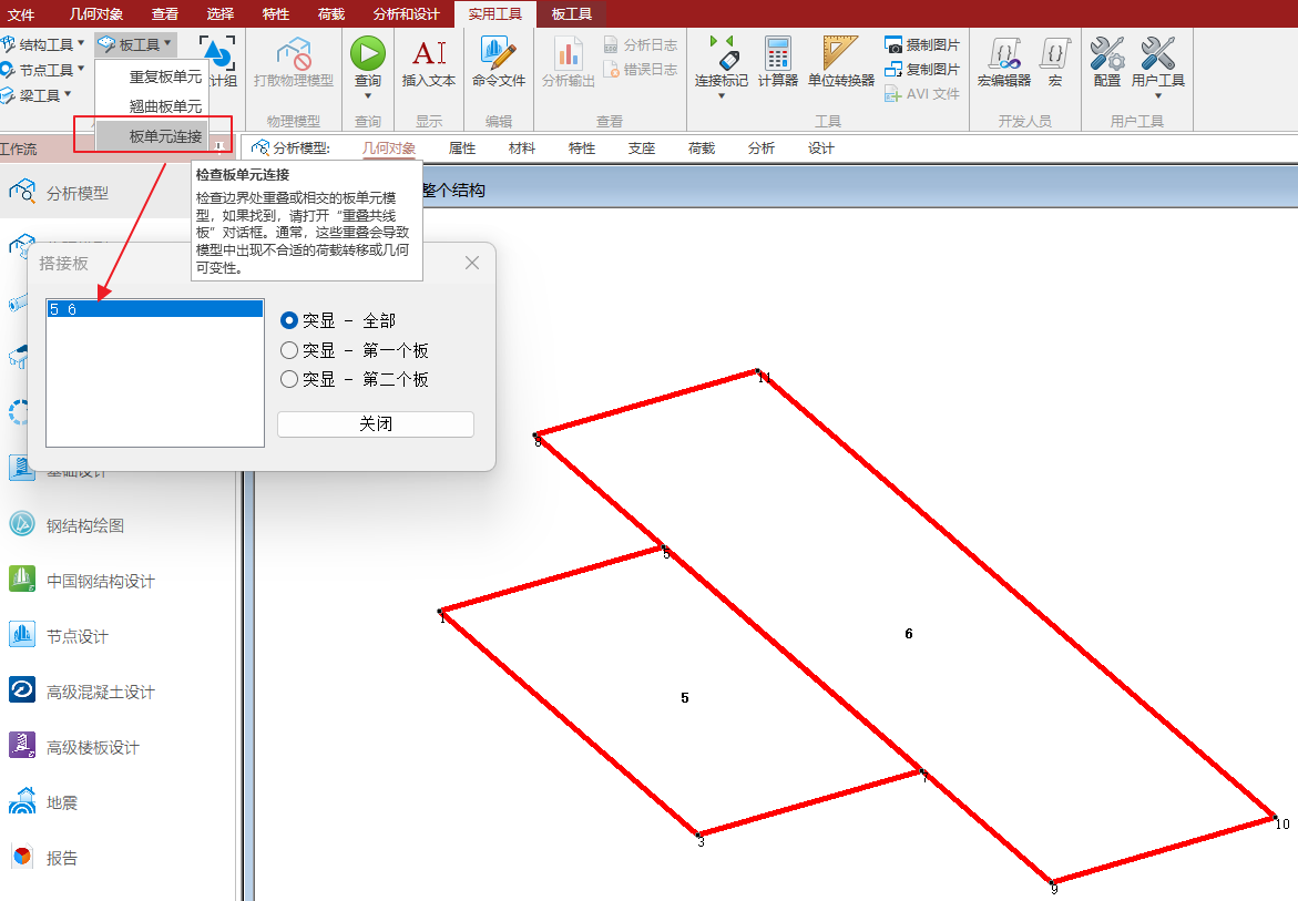 建模过程中需要检查梁板连接问题以及板之间不当连接。