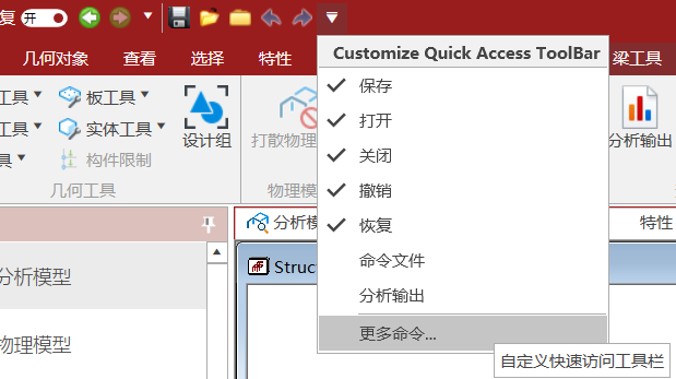 在STAAD.Pro图形用户界面中,工具和命令是按照工作流程在功能区工具栏中组织排布的。 但是我们也可以自定义STAAD.Pro环境,以便能够快速访问我们经常使用的命令。