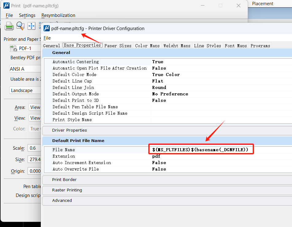选择卡片 Default Print File Name下,将File Name设置成:(MS_PLTFILES)$(basename(_DGNFILE)) 就可以了