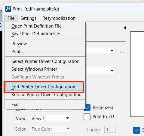 在打印窗口,点击File> Edit Print Driver Configuration打开如下对话框:
