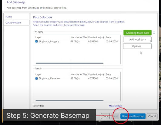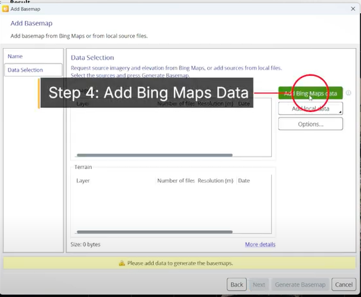 4. 在Data Selection部分,选择“Add Bing Maps data”,从Bing Maps服务添加地图数据;