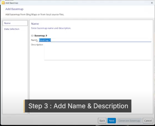 3. 为基础地图添加名称和描述,以作为信息的识别,方便日后管理使用;