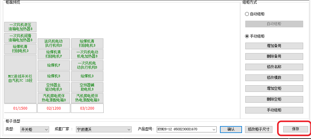 6.为所有柜子选型完成后,点击保存: