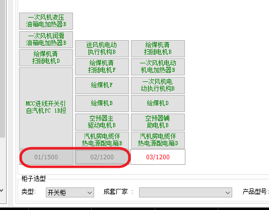 5.接下来可以进行柜子类型、厂家、型号的选型,单机一个或者多个柜子编号处,显示为灰色代表选中: