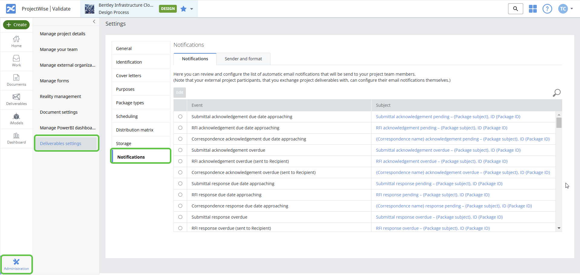 Deliverables Management settings are found under Administration - Deliverables settings.