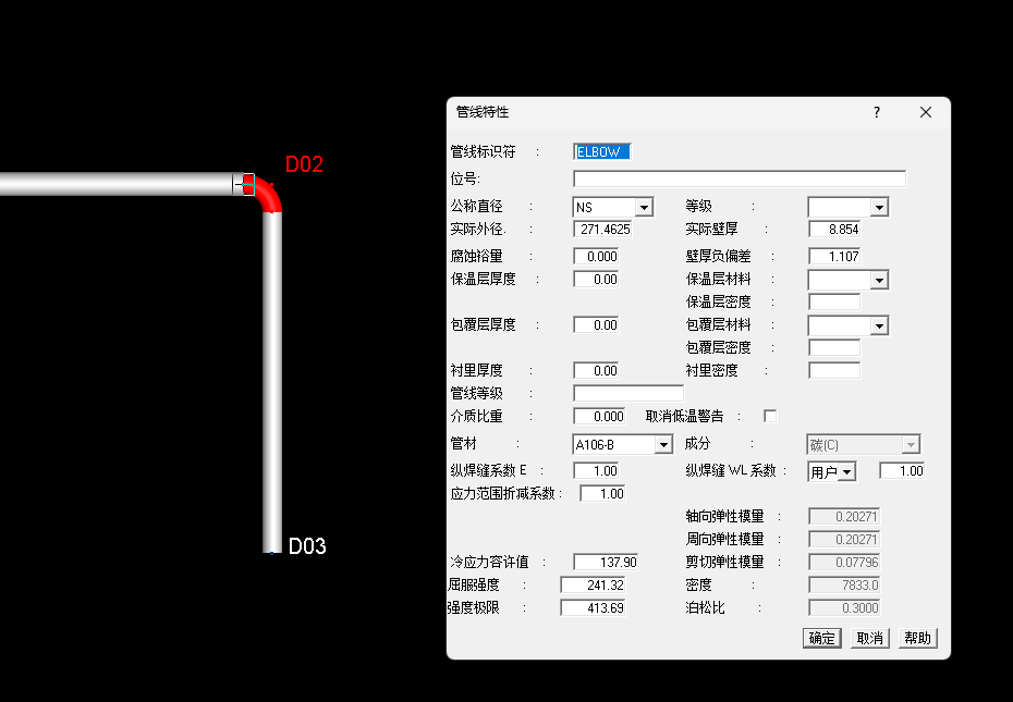 8.分别选中弯头两端的管点,点击“插入--其他数据--连接类型和用户自定义SIF"输入自定义的应力增大系数SIF(通常此数据可以通过弯头的设备厂商得到)