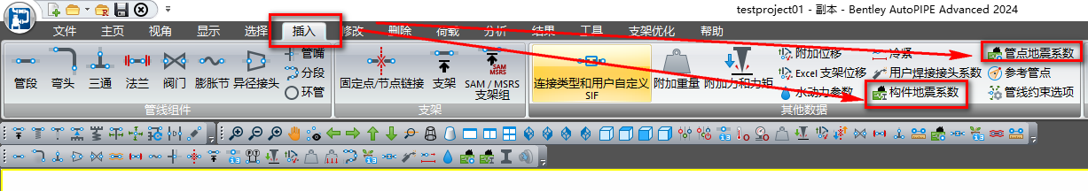 2.点击“插入>其他数据>“构件/管点地震系数”命令