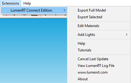 Export to LumenRT: On the SketchUp main menu, go to Plugins (At the right corner of the menu bar) > Export to LumenRT Connet Edition