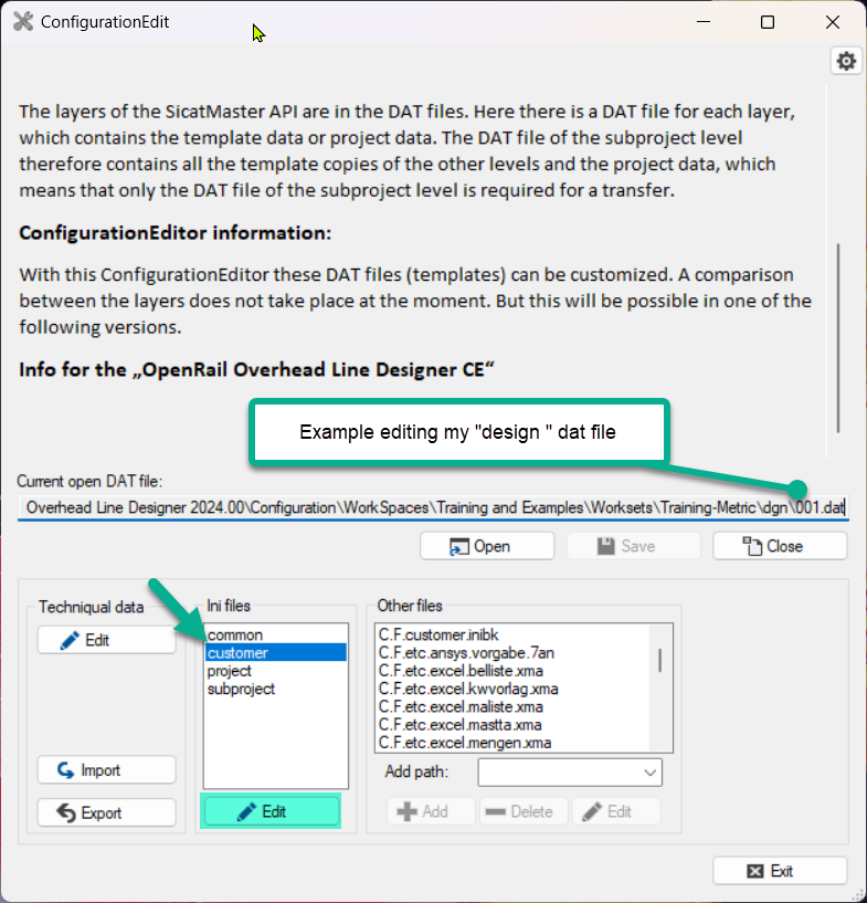 - Run "C:\Program Files\Bentley\OpenRail Overhead Line Designer 2024.00\OpenRailOverheadLineDesigner\SiCat\ConfigurationEdit.exe"