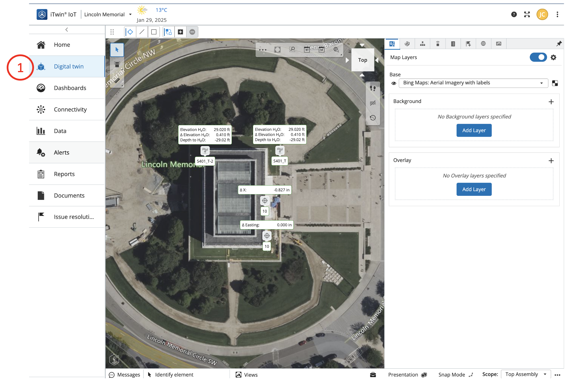 1. Navigate to Digital Twin- The Image View tool is located within the Digital Twin Module. To begin navigating to the tool click on the "Digital Twin" button on the left "Modules" sidebar. After clicking, you will be navigated to the Digital Twin module, typically the Map Layers page as shown below.
