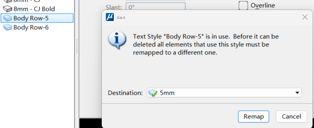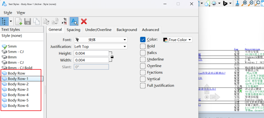 Excel被导入表格后,表格中的文本样式会保持文本在Excel中呈现的样式,在Miscrostation中,程序会为Excel中的样式自动创建的新的文本样式,名为Body Row(正文行)。如果我们想在程序中使用自己公司标准的文本样式,需要进行重新映射的操作。