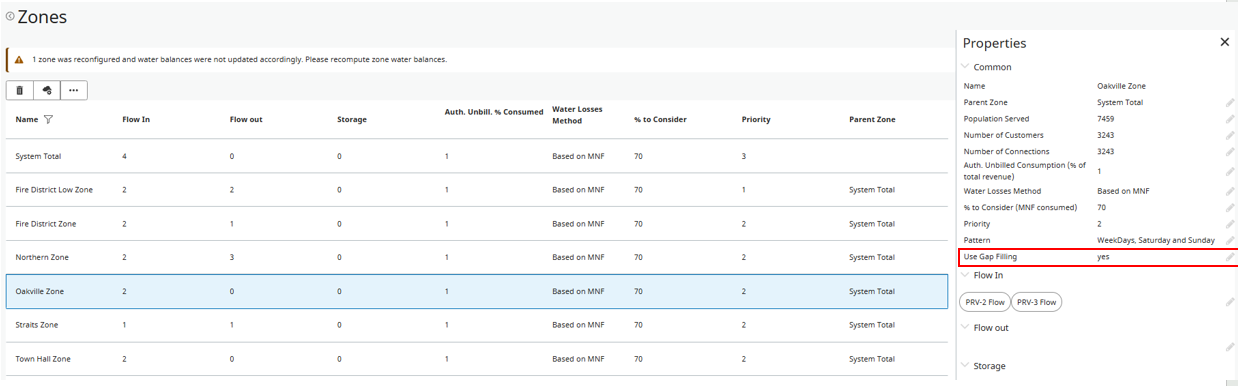 Estimated zone flows will be displayed in the zone graphs (represented with empty circles) and the estimated values will be used in all consequent calculations of water balances and other zone KPI.
