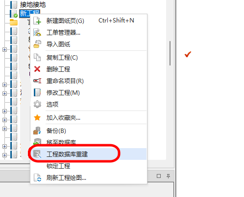 4.选择工程右键,点击工程数据库重建:
