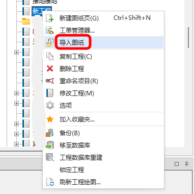 3.选择新建工程,右键,导入图纸: