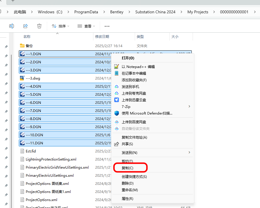 1.将现有工程图纸(dgn文件)拷贝到特定的文件夹内: