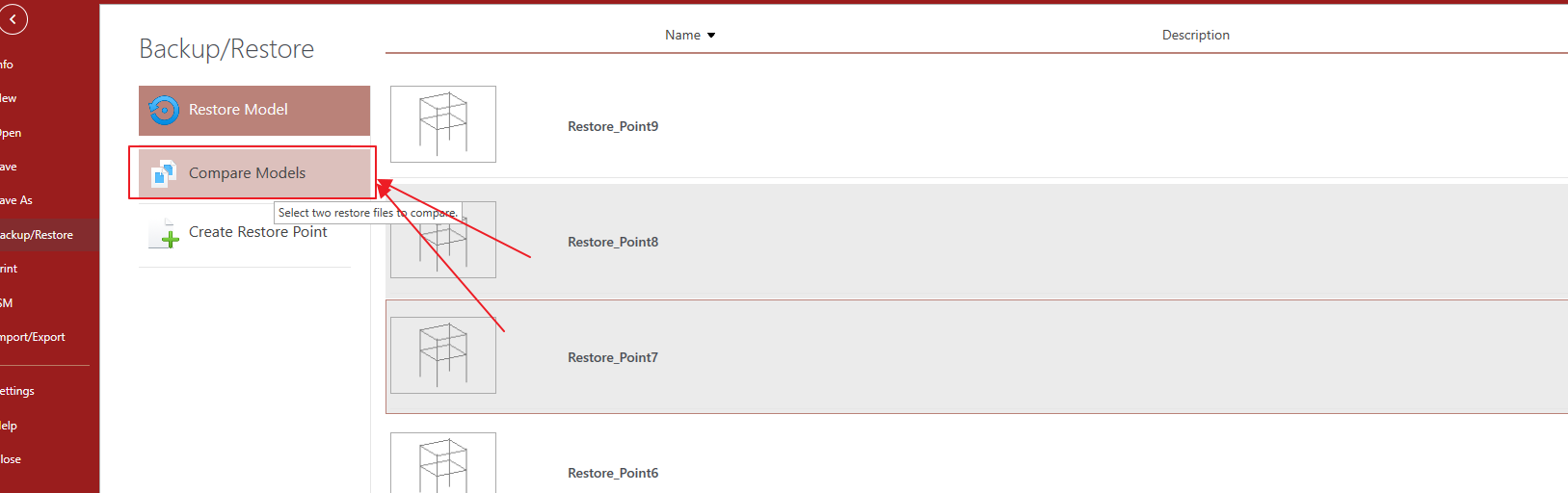 在某些情况下,您可能需要比较两个恢复点或将恢复点与当前模型状态进行比较。STAAD.Pro还提供了比较备份的功能,帮助您识别模型的变化。