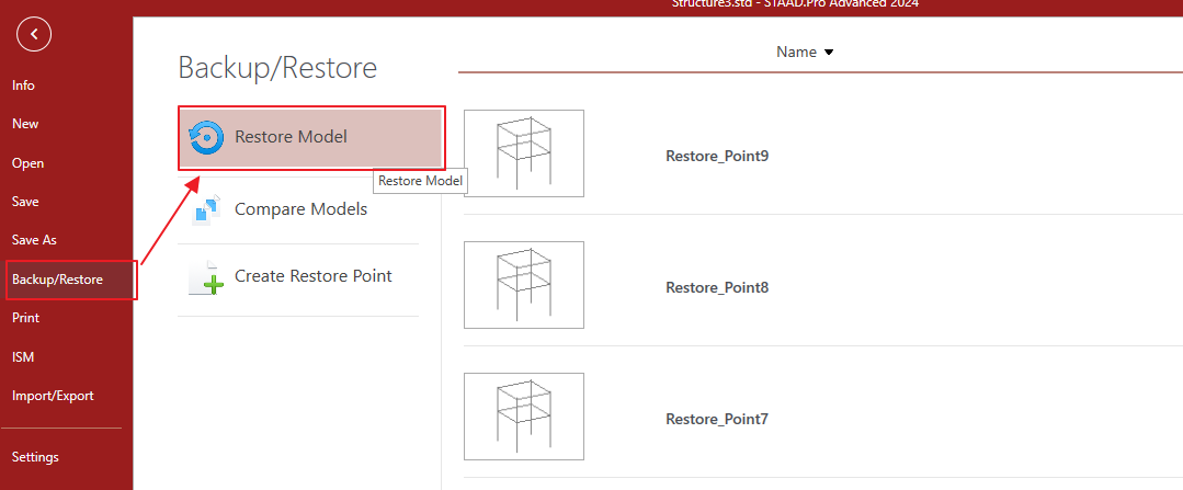 除了自动恢复功能,STAAD.Pro还允许用户手动创建恢复点,以备份整个项目。这在进行重大更改或在项目的关键阶段时特别有用。