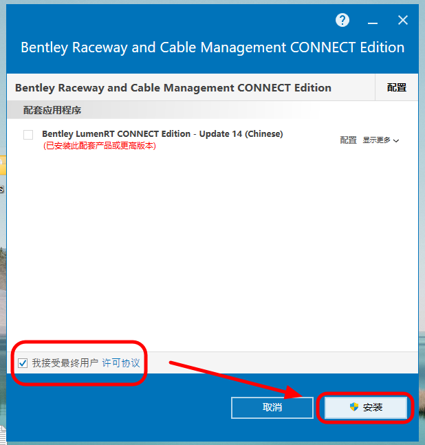 6.阅读协议后无异议后,勾选接受用户协议,点击安装: