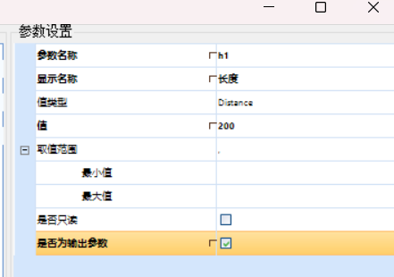 每个参数可以设置其名称、显示名称、值的类型、默认值、取值范围、是否只读以及是否为输出参数: