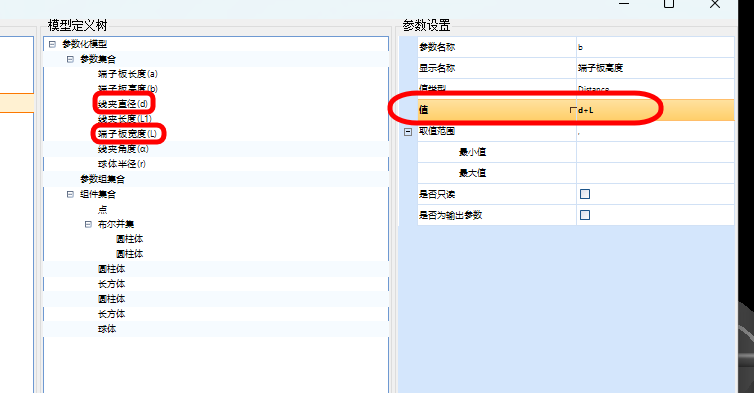 值:设置该参数的默认取值,该用于模型预览和模型布置时候参数值的初始化,可随时调整。